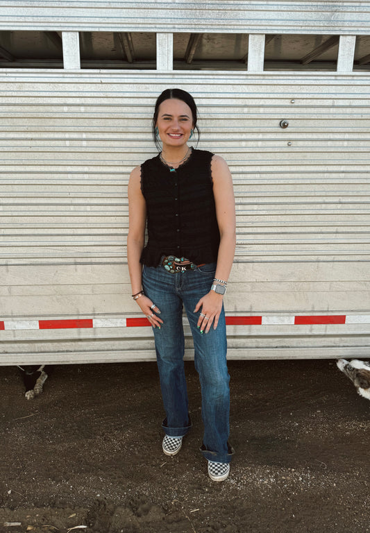 Black Button Ruffle Tank