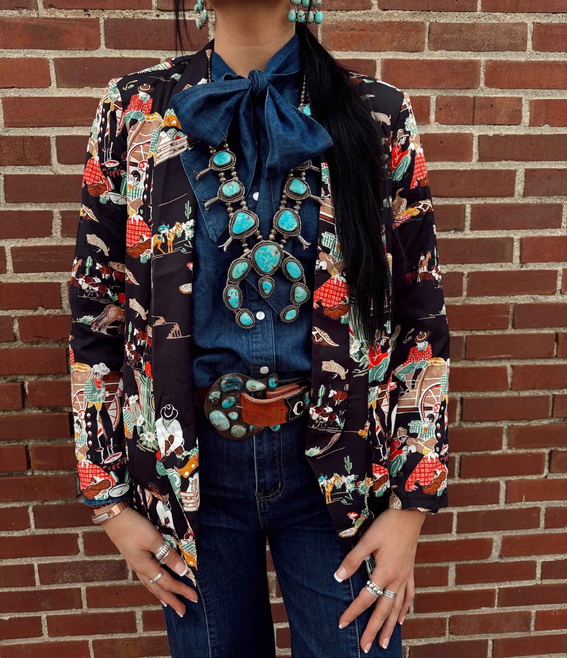 Denim Bow Pearl Snap