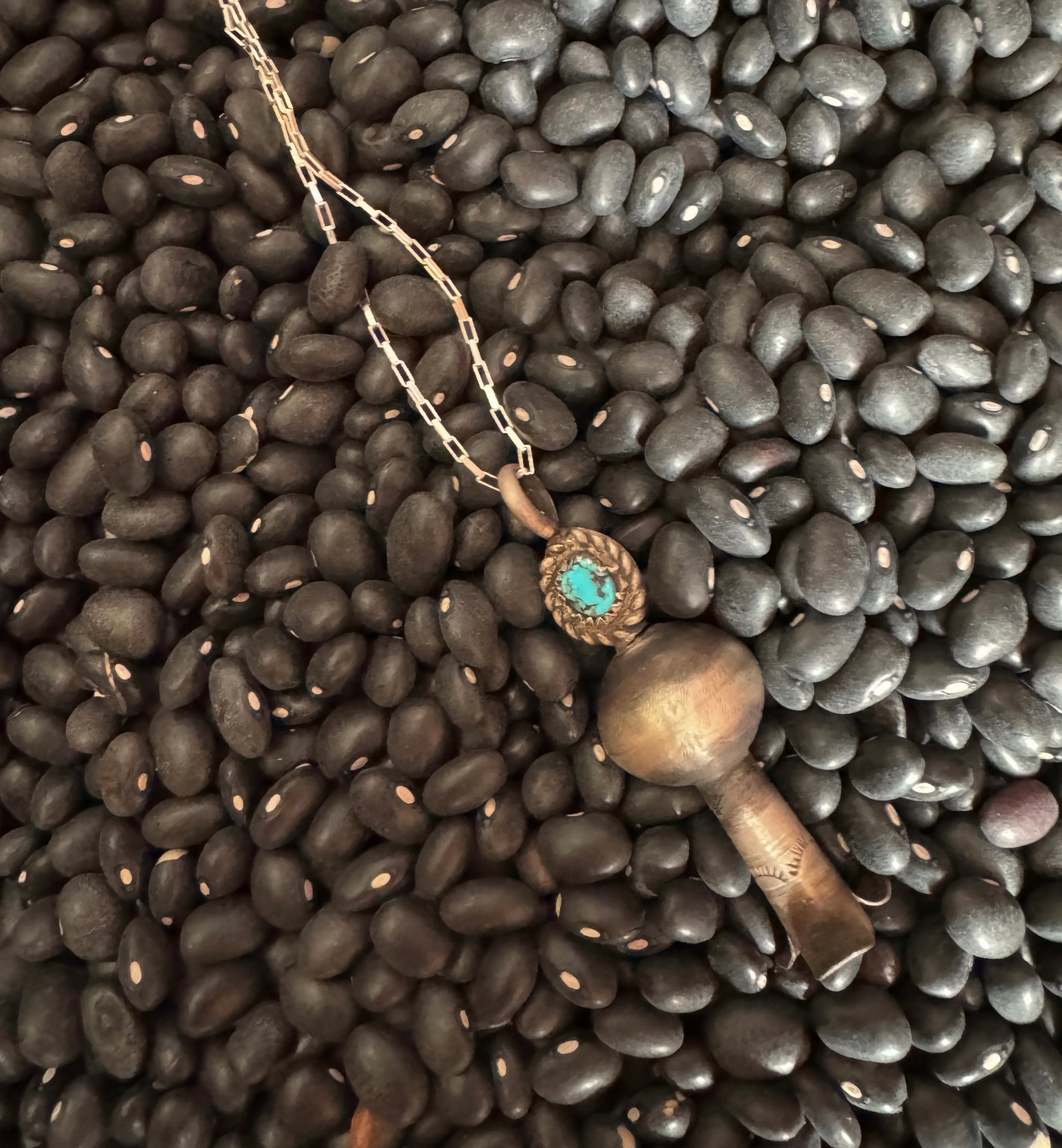 This beautiful necklace is a 16mm handmade Navajo Pearl on a 16 inch sterling silver chain. This piece is Navajo made and the perfect piece! Sterling silver and authentic turquoise.