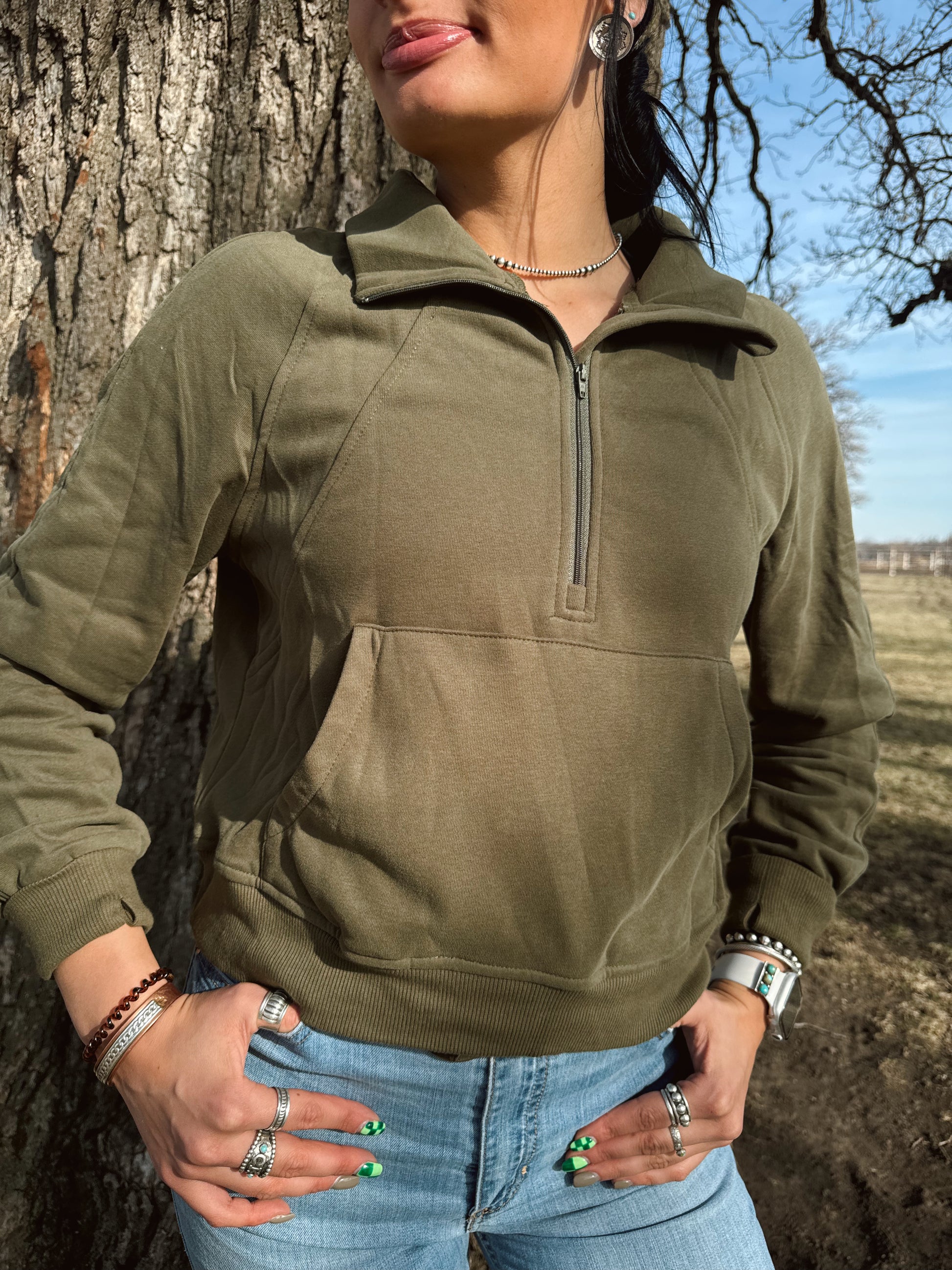 This quarter zip is perfect for dressing up or dressing comfy! This green is stylish yet subtle.