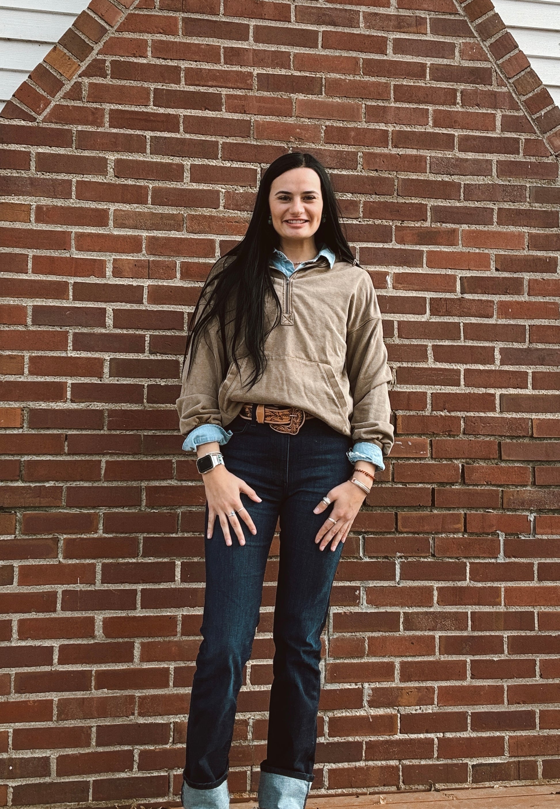 This chocolate hoodie is so fun! Wear it by itself or layer it to dress it up. This hoodie is comfy and cute!