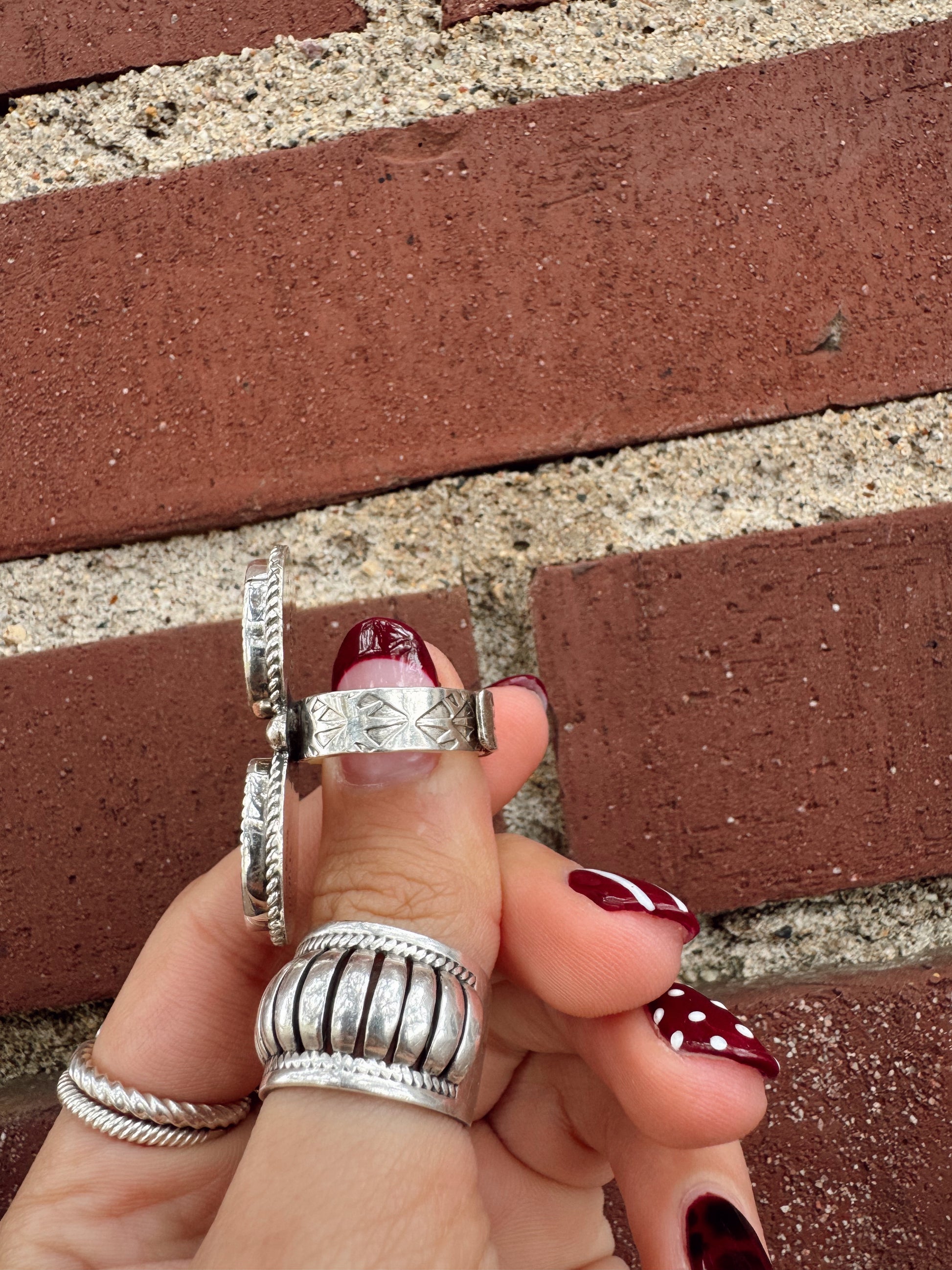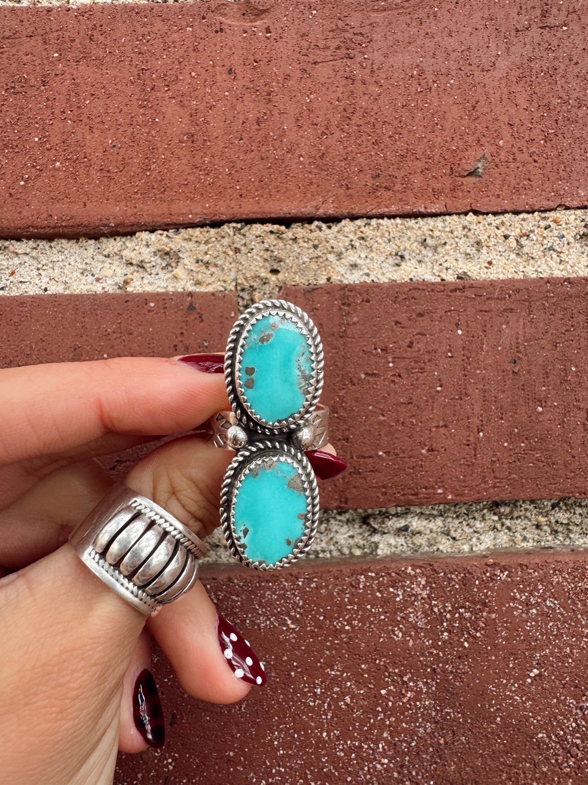 This ring is a statement piece or perfect for everyday! It is Navajo made. Stamped and signed. It is also authentic Arizona turquoise and sterling silver! & has an adjustable band!